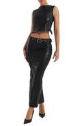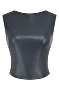 Tu cita nocturna te llama con este elegante top de cuero sintético sin mangas, diseñado con una silueta corta y acentuado con una espalda abierta con tiras.