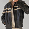 Chaqueta clásica de cuero extragrande para mujer, negra, blanca, con rayas en el pecho y las mangas
