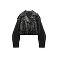 Chaqueta de cuero oversize con cinturón y corte corto negro para mujer