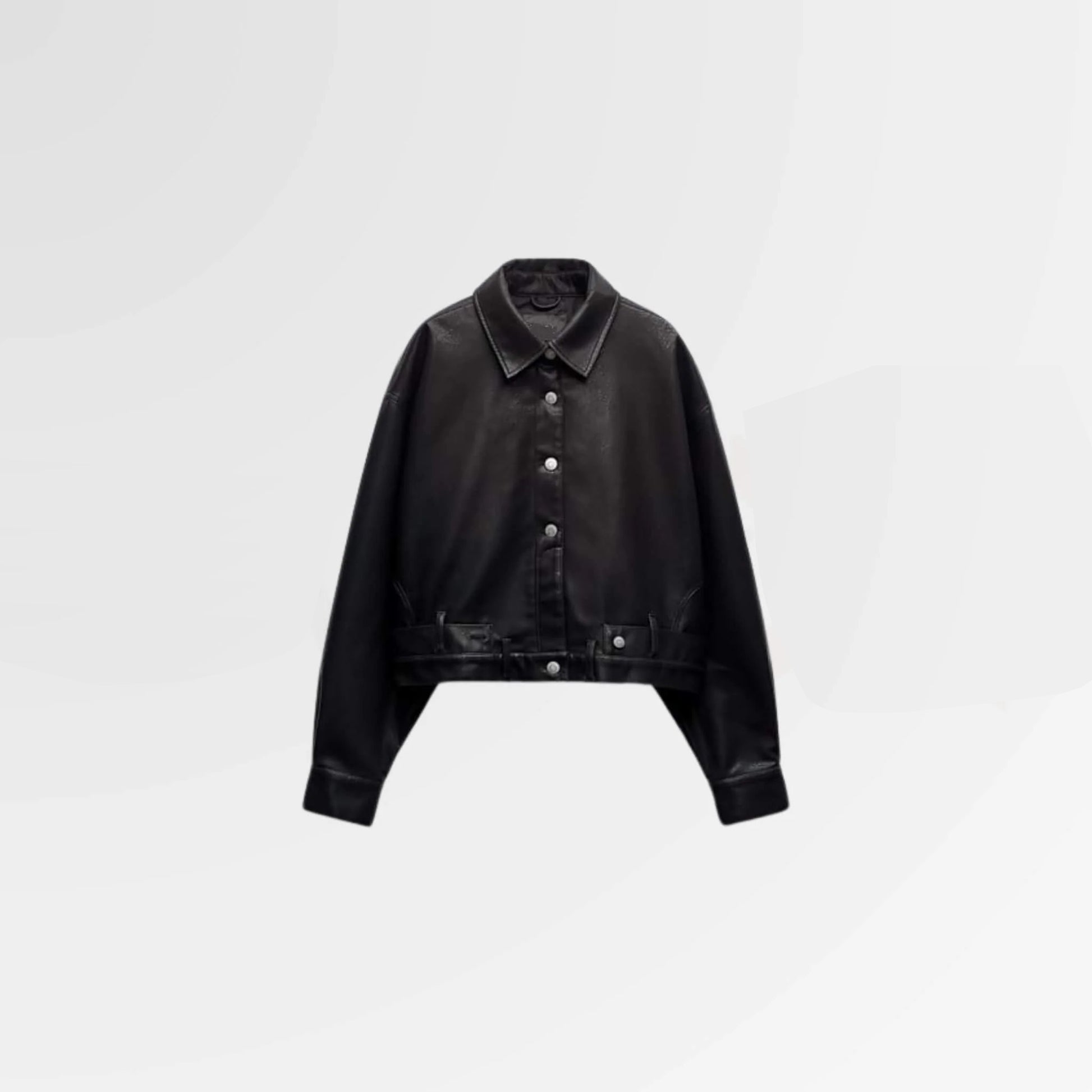 Presentamos nuestra Camisa de Cuero Vaquera: una versátil combinación de camisa y chaqueta. Confeccionada en cuero genuino, esta camisa con cuello presenta mangas largas con puños y un exclusivo dobladillo con efecto pantalón. El forro a juego le da un toque de lujo. Realza tu estilo con el cierre de botones frontal, que combina a la perfección comodidad y sofisticación.