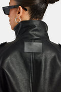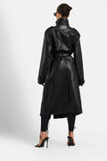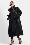 Gabardina extragrande de piel sintética negra para mujer