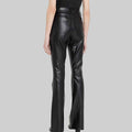 - Detalle de pespuntes a tono. Cierre frontal con cremallera, botón y gancho metálico.