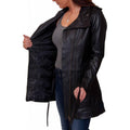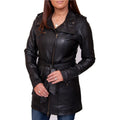 Confeccionado en una hermosa y suave napa, este abrigo para dama hasta la cadera con cinturón es ideal para el viaje diario, así como para salir y como ropa elegante.