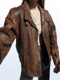 Chaqueta retro de cuero auténtico marrón de gran tamaño, hecha a mano, de los años 90 para mujer