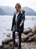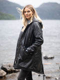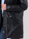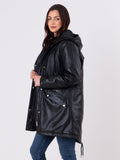 Abrigo de cuero negro con capucha y ajuste personalizado para mujer