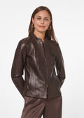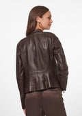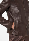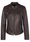 Chaqueta de cuero sencilla marrón oscuro para mujer