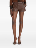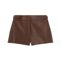 Pantalones cortos de cuero marrón con cinturón para mujer