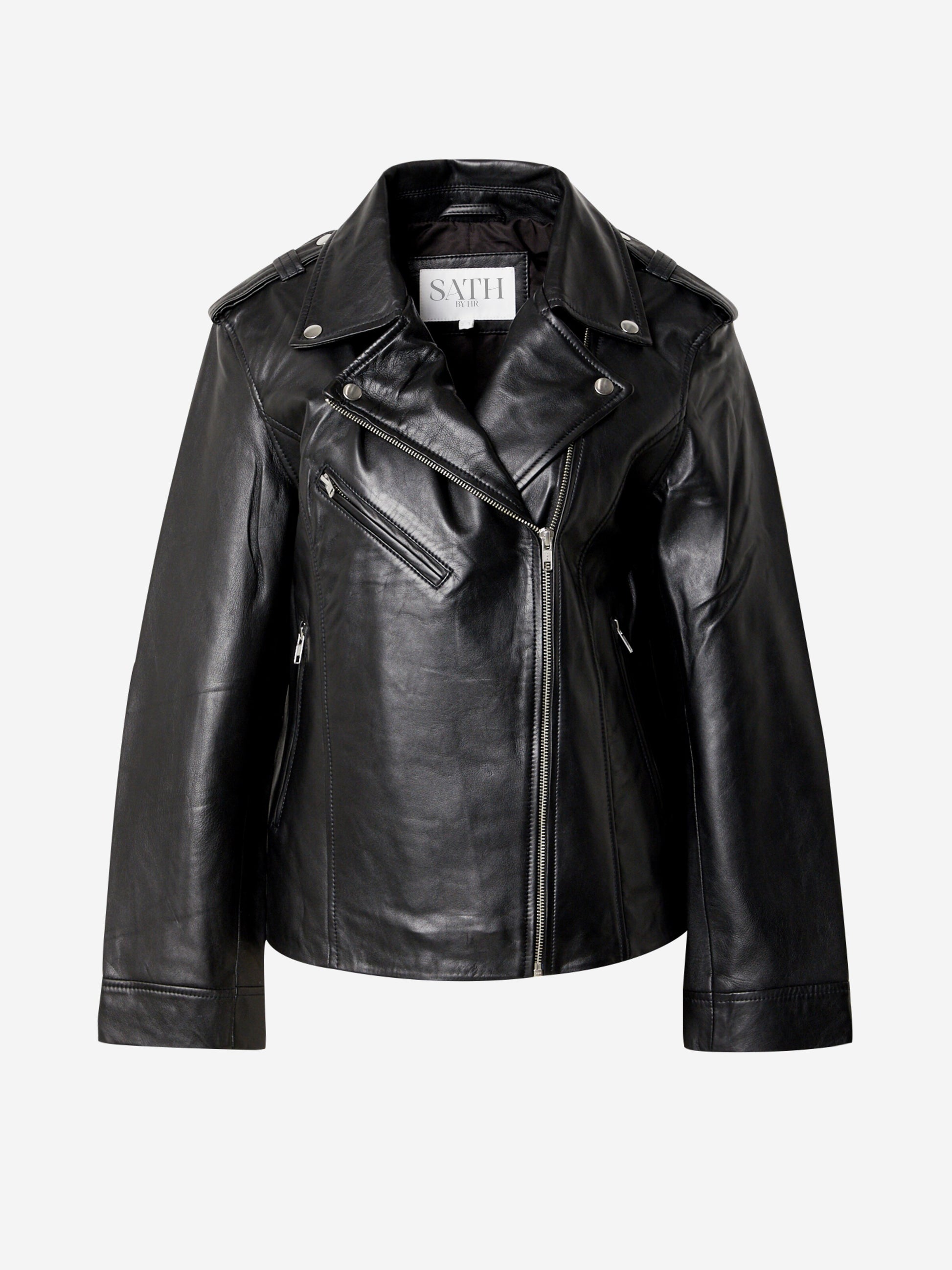 Chaqueta de motociclista de cuero y tela elegante para mujer