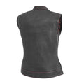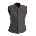 - Chaleco estilo club con cuello de una pulgada, broches cubiertos y cremallera central corta oculta
