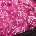 - Forro de tres paneles: forro interior con estampado paisley blanco sobre fondo rosa