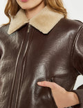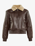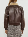 Chaqueta bomber de cuero estilo aviador color bronce premium para mujer