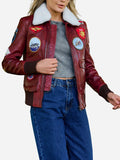 Chaqueta de cuero estilo aviador A2 Flight roja para mujer
