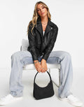 Chaqueta de motociclista de cuero suave de corte regular para mujer