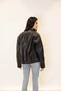 Exprésate con esta elegante chaqueta de cuero extragrande inspirada en el estilo retro de los años 90.