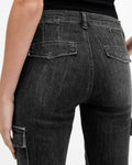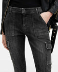 Dale un toque de estilo a tu colección con estos jeans. Confeccionados en denim elástico teñido, con dobladillos deshilachados y detalles cargo. Son de tiro medio y ajustados.