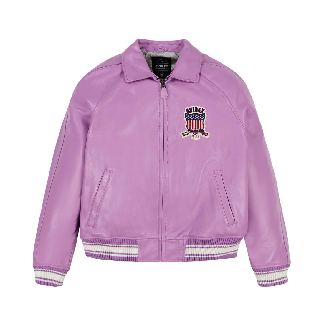 Men's Pink Icon Varsity Leather Bomber Jacket