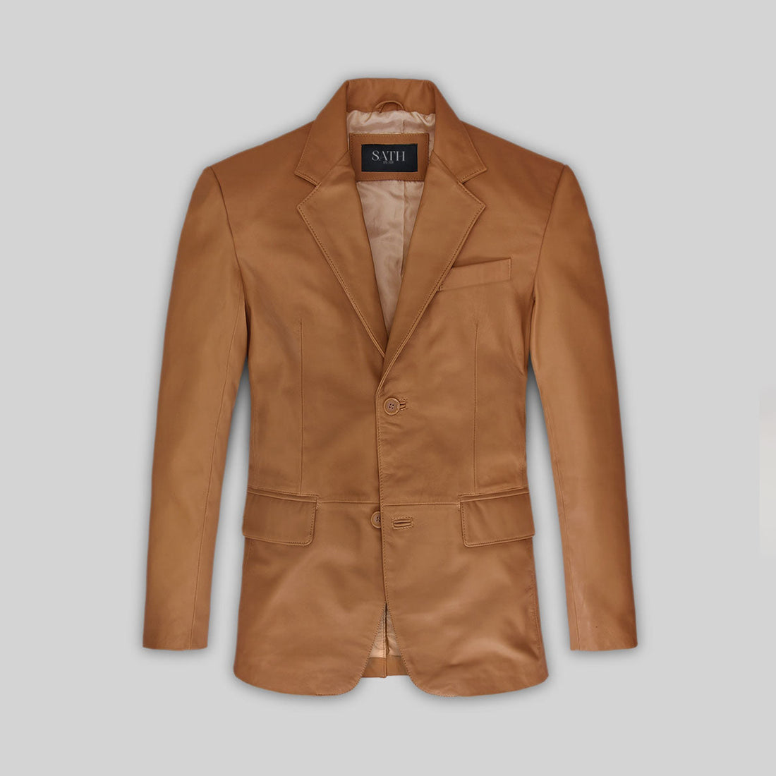 Detail Be labeled as a trendsetter with our Soft Hunter Tan Leather Blazer that has...