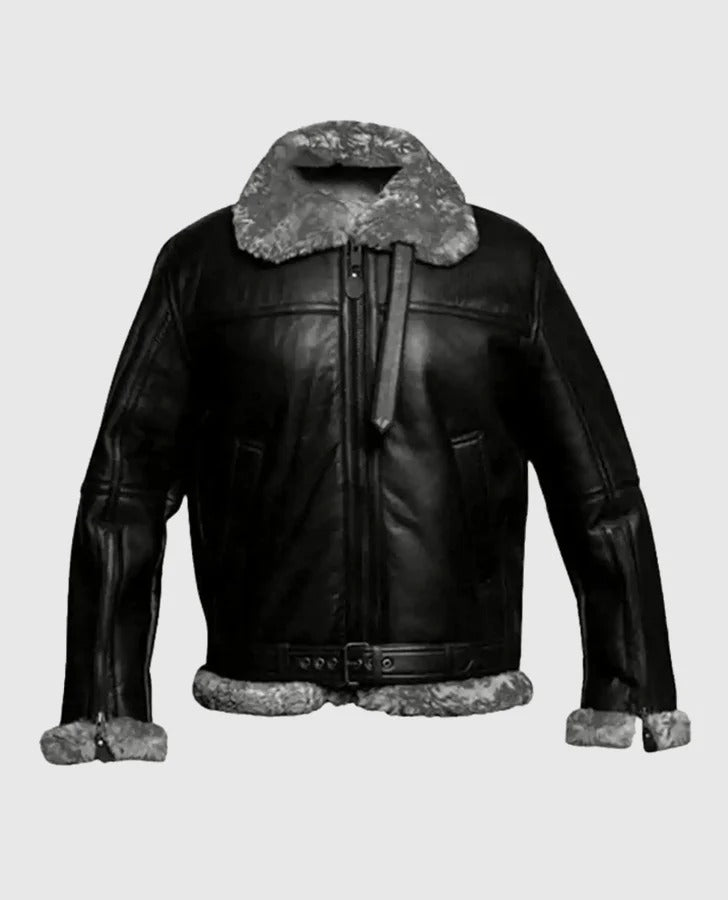 MEN's Black Sherpa Shearling B3 Bomber Aviator Jacket
