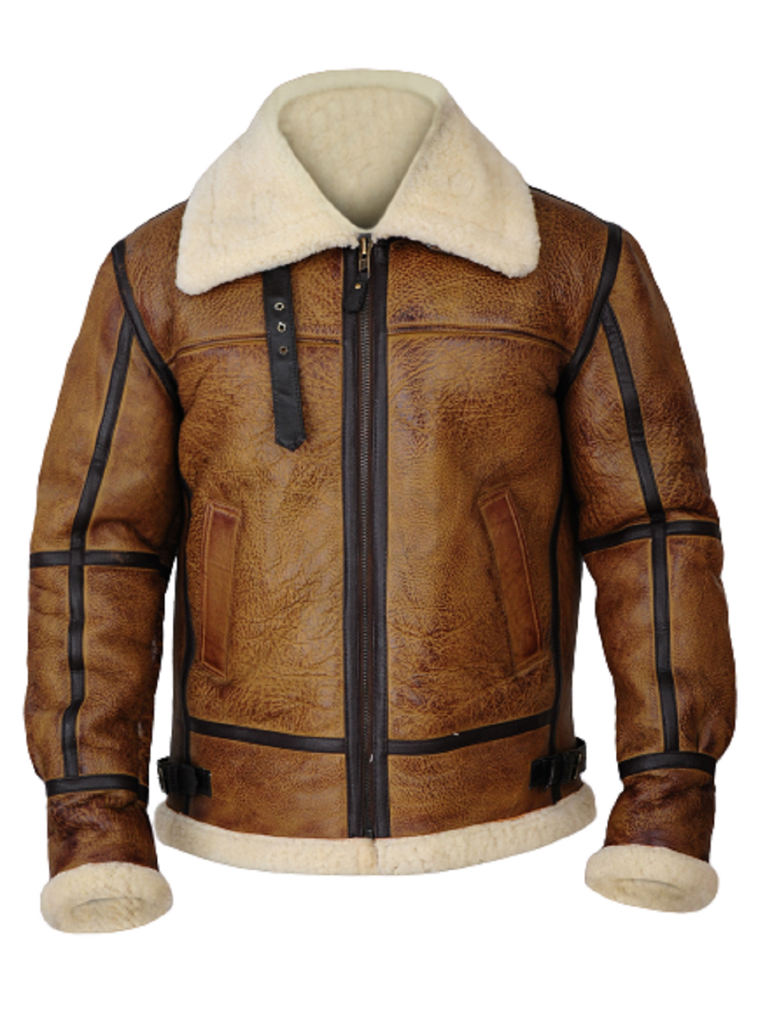 Men's Brown B3 Aviator Shearling Leather Jacket
