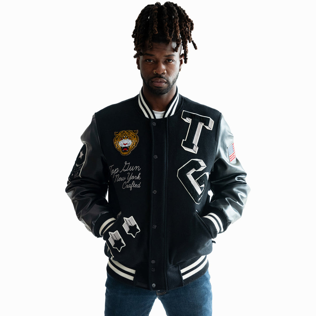Men's TIGER Leather & Wool Varsity Jacket