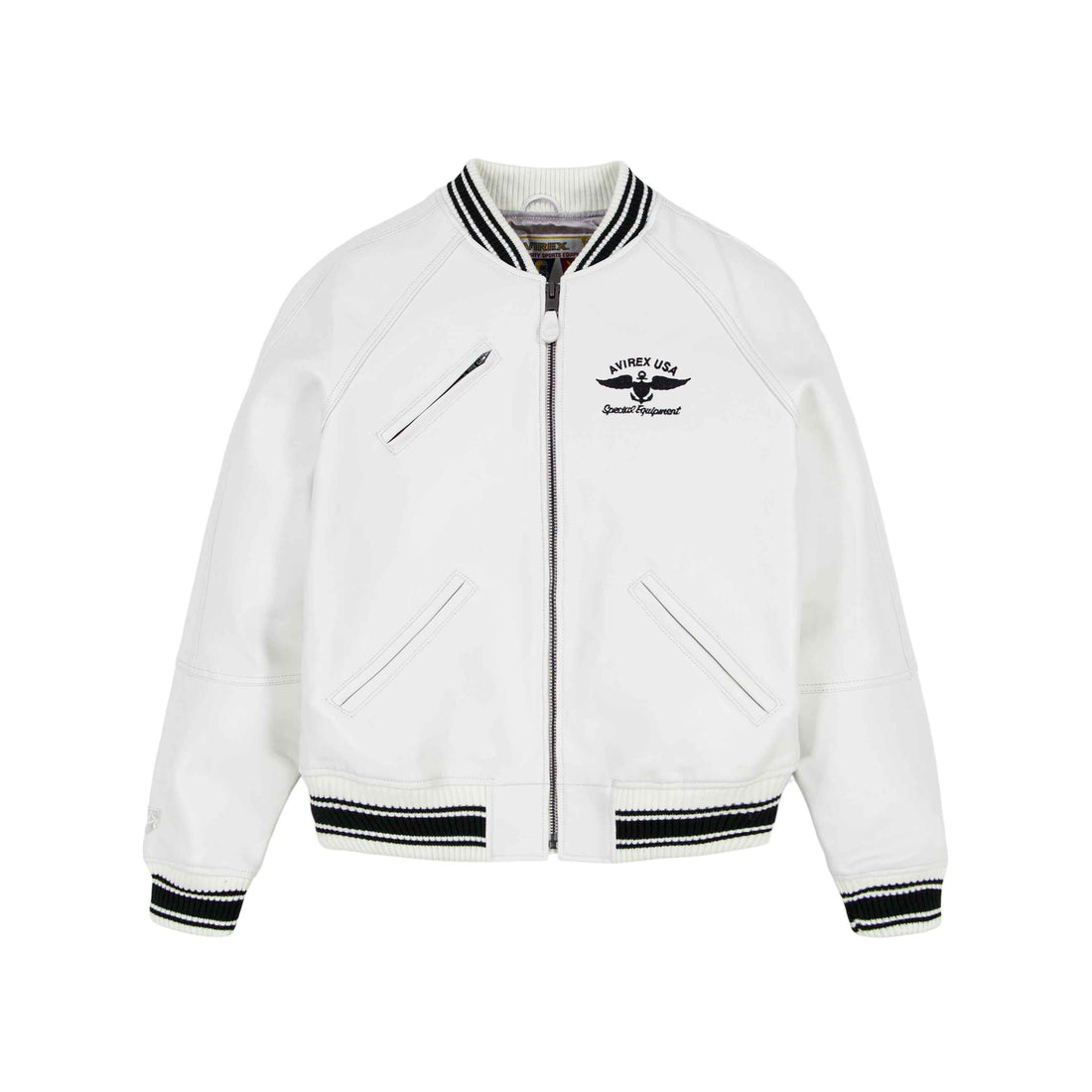Men's White Icon Varsity Leather Bomber Jacket