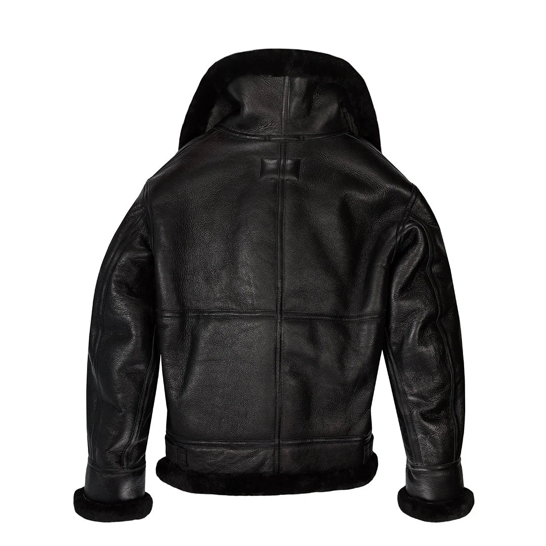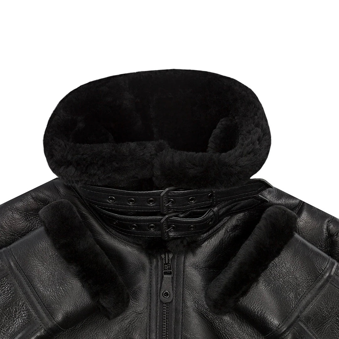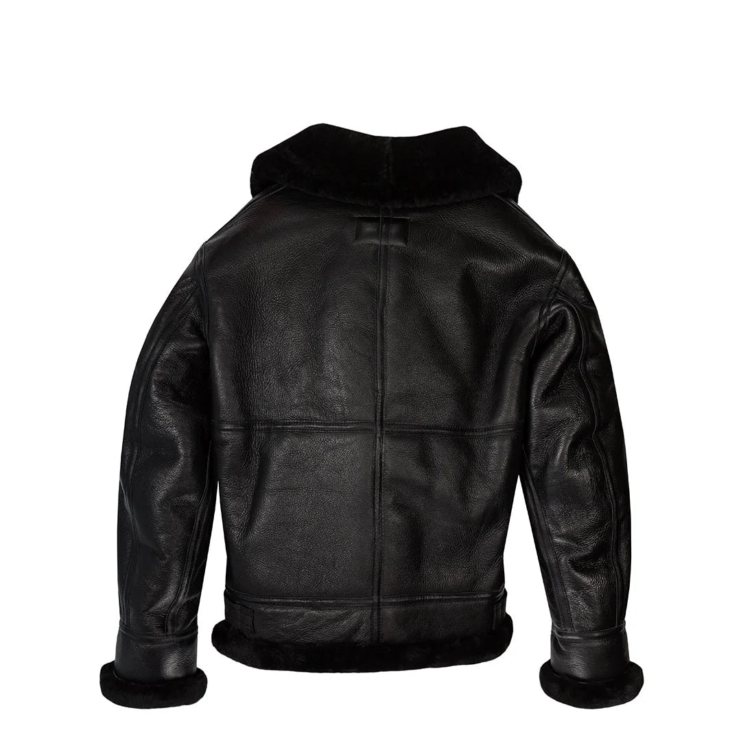 Men's B-3 Sheepskin Fur Leather Jacket - BLACK