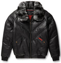 Men's Black Detachable Fox Fur Collar V-Bomber leather Jacket