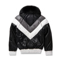 Men's Black Detachable Fox Fur Collar V-Bomber Sheepskin Leather Jacket