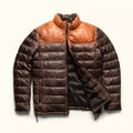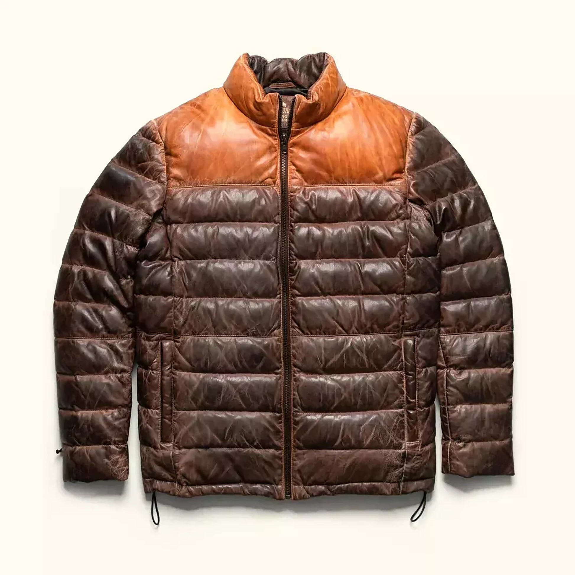 Men's Double Tone Distressed Quilted Style Sheepskin Leather Puffer Jacket