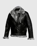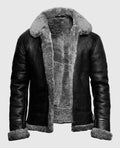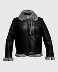 Men's FUR Aviator Flying Pilot Bomber Black Jacket