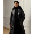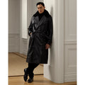 - Point collar. âRalph Laurenâ debossed at the collar stand. Button-off shearling collar. Double-breasted silhouette. Genuine horn buttons.