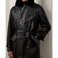 - Shell and lining: 100% leather. Detachable collar: 100% dyed sheep shearling. Upper body lining: 100% wool. Lower body lining and sleeve lining: 51% viscose, 49% cotton. Fill: 100% polyester.