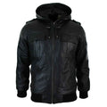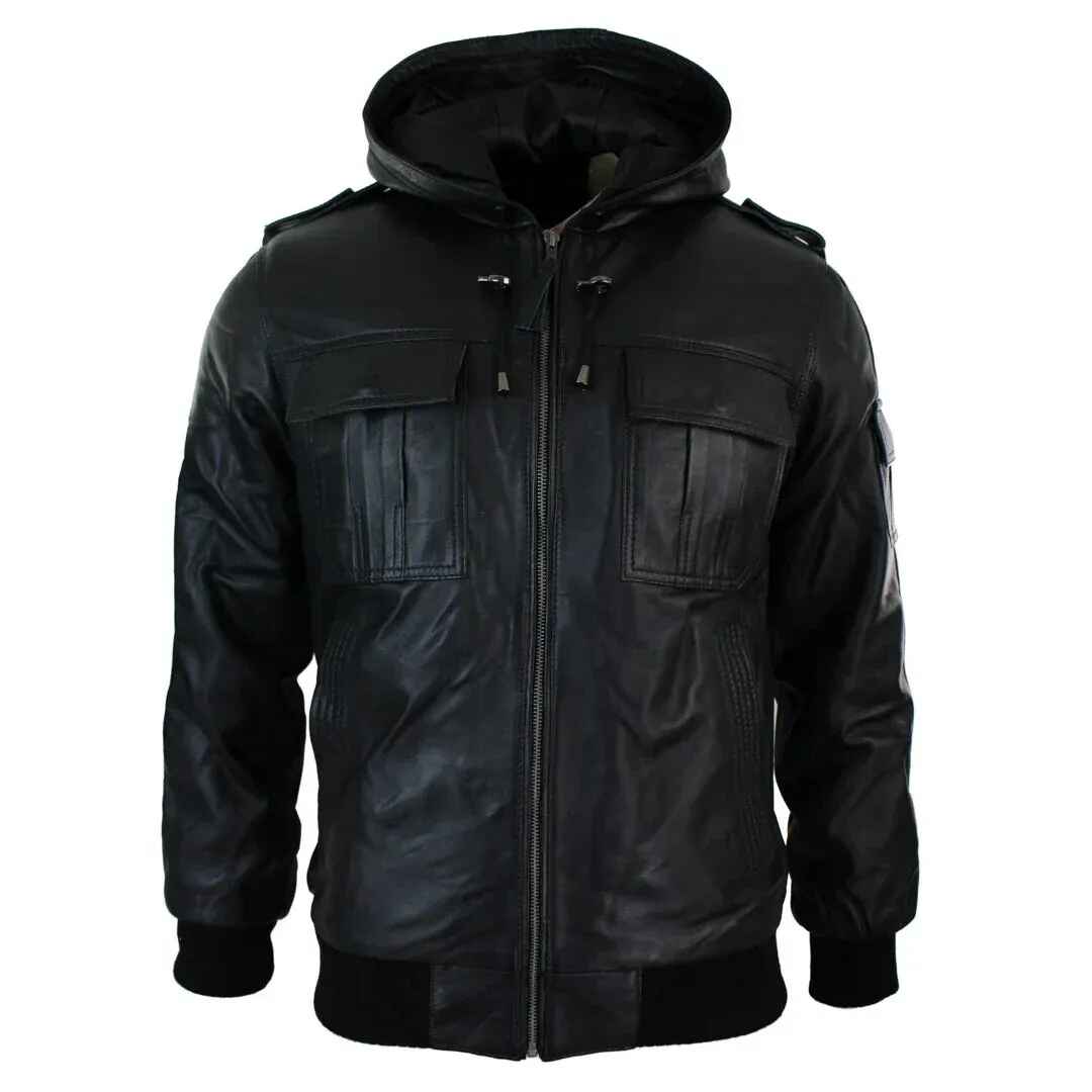 • Men's Genuine Leather Jacket Hooded Bomber Style