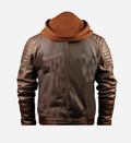 Men's Voguish Brown Detachable Hooded Leather Jacket