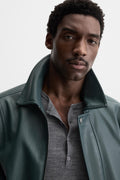 - Lapel collar and long sleeves with elasticated inner cuffs.