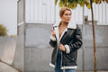 Women’s Black with White Fur Shearling Leather Jacket