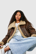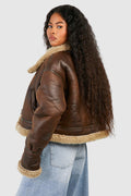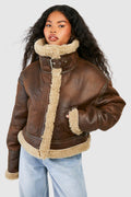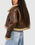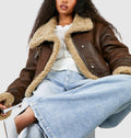 Women’s Brown Long Sleeves Shearling Leather Jacket