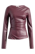 Showcase your trendsetting style in this buttery leather top designed with shapely ruching at the sides and a slit that creates a modern asymmetric hem.