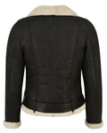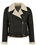 The Women's Shearling biker leather jacket is the perfect addition to your cold-weather wardrobe. This faux shearling jacket features a white fur collar with a belted waist, two side zip pockets and an open hem with fur cuff. This is an essential addition to any winter wardrobe.