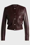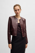 Women's Red Hardware Press-Studs Collarless Leather jacket