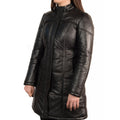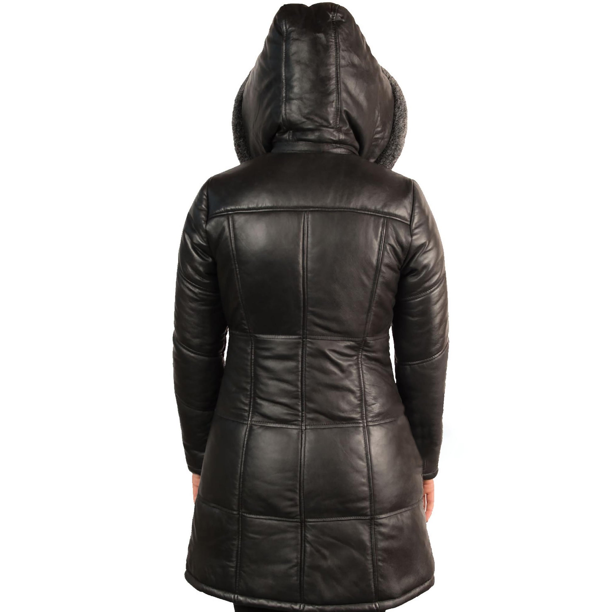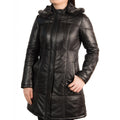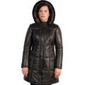Women's Black Detachable Hood Leather Coat
