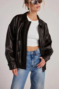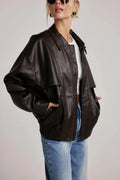 Women's Black Dropped Shoulders Oversized Soft Leather Jacket