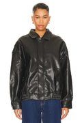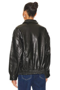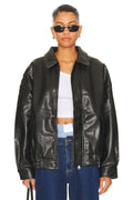 Women's Black Faux Leather Bomber Jacket