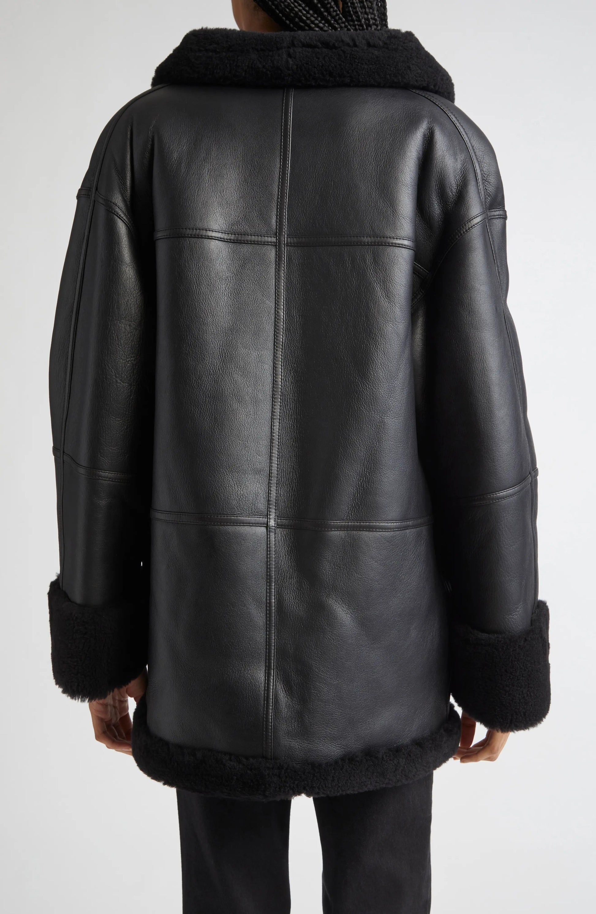 Supremely soft fur peeks out from the oversized collar and turn-back cuffs of this winter-staple shearling coat made modern by a big, roomy silhouette.