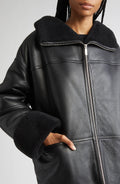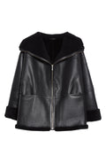 Women's Black Menfi Oversize Genuine Shealring Coat