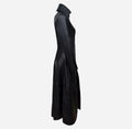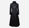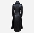 Get ready to make a dramatic entrance with this stunning Vampire Ladies Flare Coat. Crafted from high-quality black leather, this full-length coat features a striking black and red lining that adds a touch of sophistication and mystery. The coat has a flared bottom that creates a flowing silhouette, making it perfect for special occasions or cosplay events. The classic foldable collar and front double-slider zip closure complete the look, adding a touch of elegance to this timeless design. Whether you're looking to embrace your inner vampire or simply add a touch of gothic flair to your wardrobe, this coat is sure to turn heads and make a statement wherever you go.