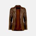 Women's Brown Lavinia Luster Double-Breasted Leather Blazer