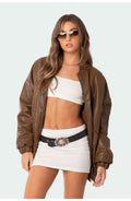 Women's Brown Rubbed Trims Oversized Comfortable FitLeather Jacket