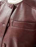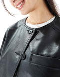 Women's Collarless Black Leather Jacket