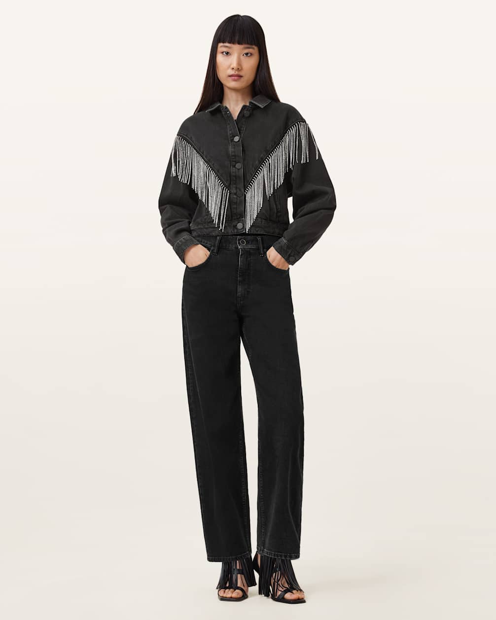 Women's Cotton Embellished Fringe Denim Jacket